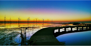 台中から北西へ約20km、大甲溪の河口に広がるおよそ1500ヘクタールの高美湿地は、天気など条件が重なると周りの風景を鏡面のように反射させることから、「台湾のウユニ塩湖」と呼ばれ注目を集めています。湿地には100種以上の鳥が生息しており、バードウォッチングを楽しんでいる人も多く、周辺には海から吹き付ける風を利用した風力発電の施設が立ち、人工物と自然の景色が独特の景観をつくり出す穴場のスポットです。